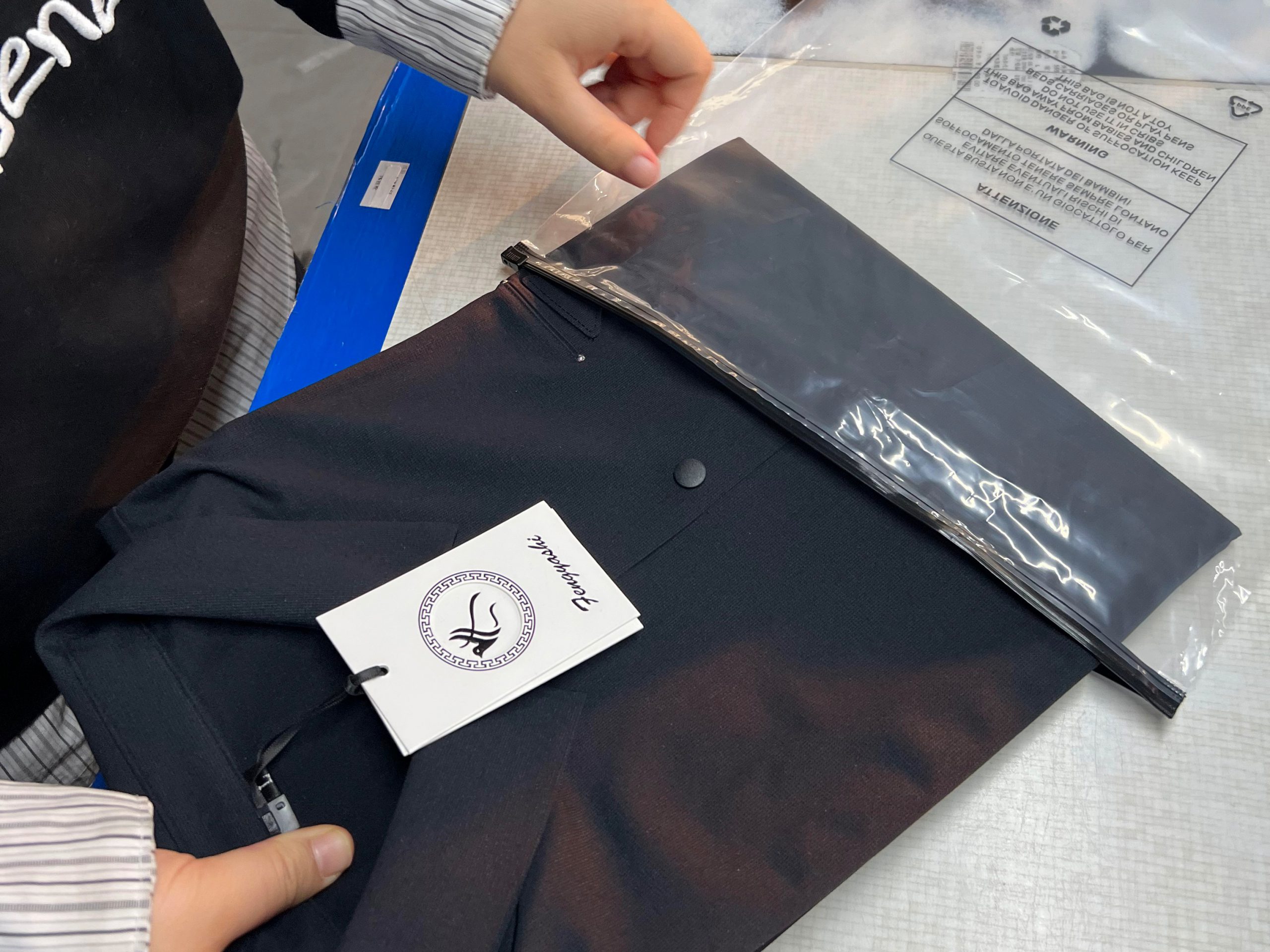 Of course, we can help you customize all the items for your brand, such as your collar labels, hangtags, packaging bags, etc.